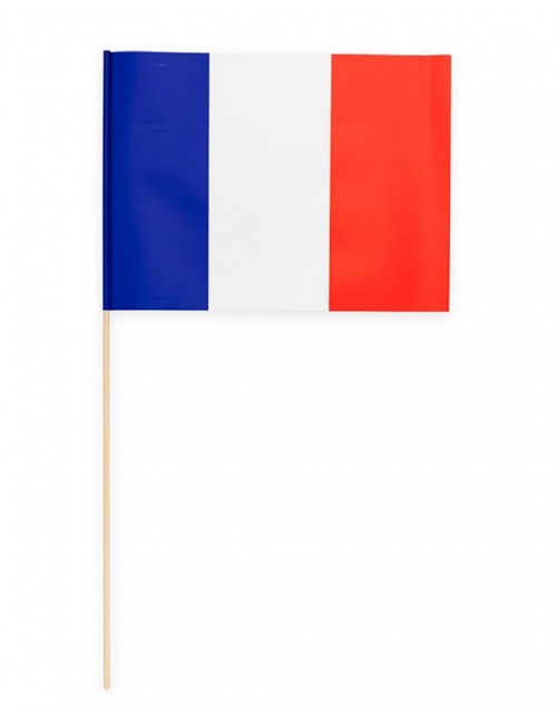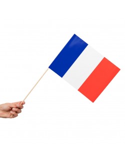 Set 10 stegulete Franta, din hartie, dimensiuni steag 20 x 30 cm si suport din lemn cu lungime de 50 cm.