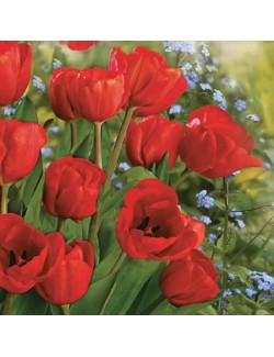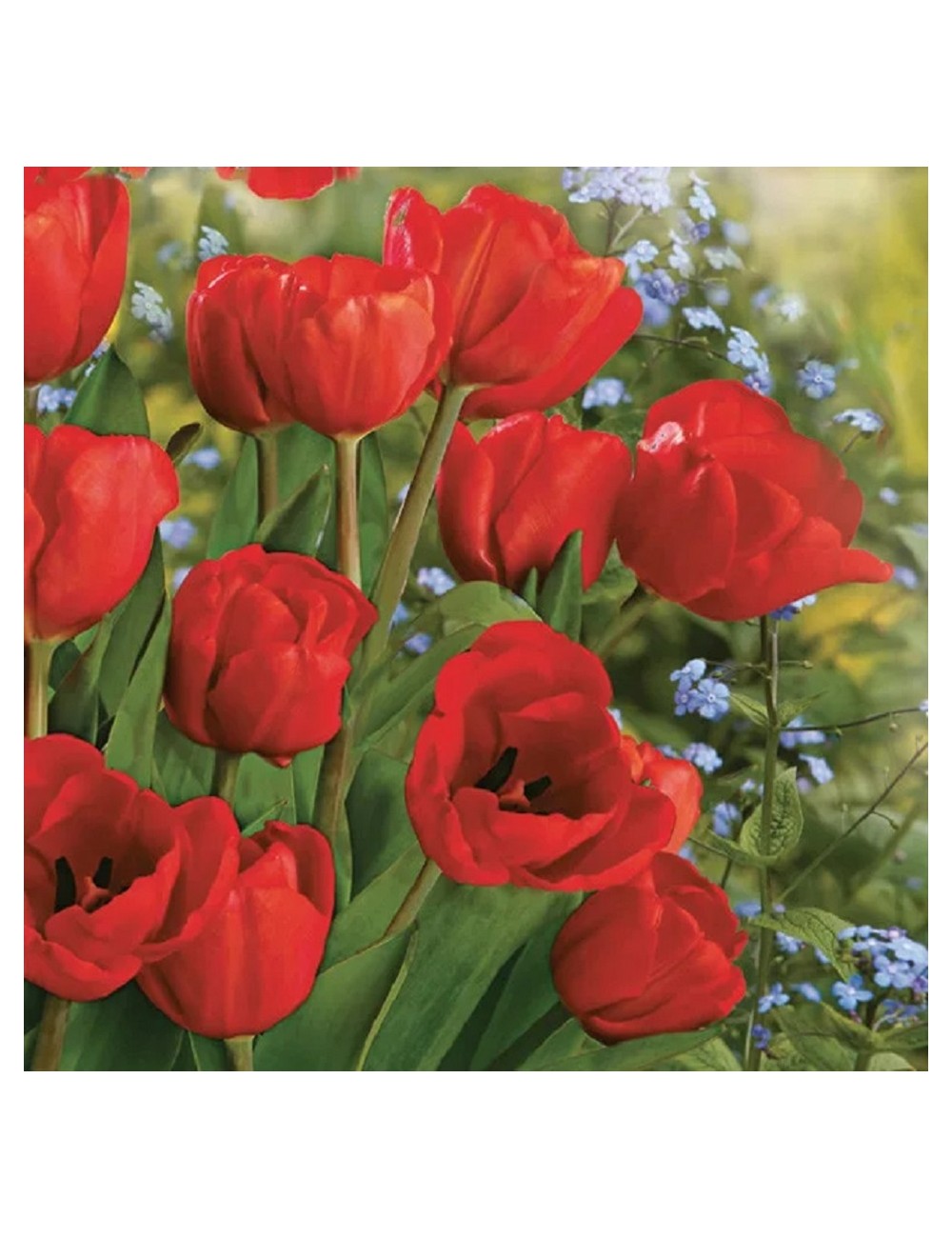 Set 20 servetele, Buchet Lalele rosii, dimensiuni 33 x 33 cm (extins), din 3 straturi de hartie, imprimeu multicolor