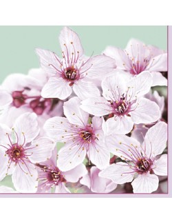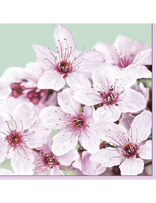 Set 20 servetele Flori de cires, dimensiuni 33 x 33 cm (extins), din 3 straturi de hartie, design care inveseleste orice masa.