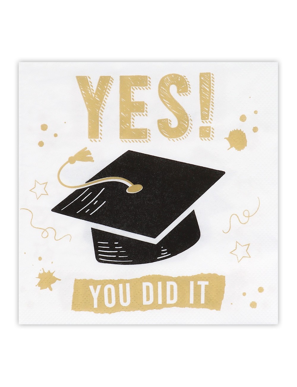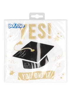 Set 20 servetele Yes! you did it, dimensiuni 33 x 33 cm (extins), din 3 straturi de hartie fina, fond alb, imprimate cu o toca neagra si scris auriu.