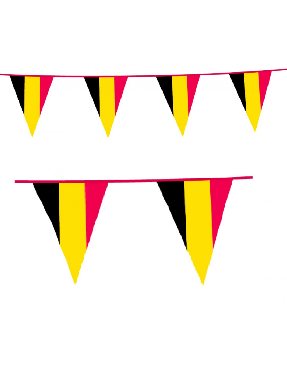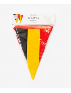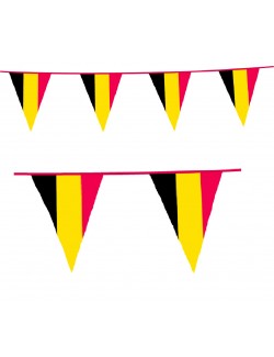 Ghirlanda Steag Belgia, culori negru-galben-rosu, lungime totala aprox. 10 metri, din folie PVC subțire, contine 15 fanioane de 20*30 cm fiecare.