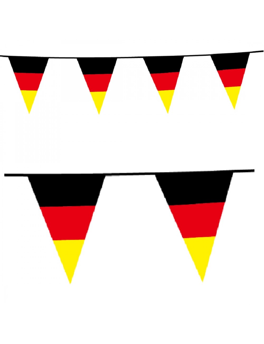 Ghirlanda decor, Steag Germania, culori negru-rosu-galben, lungime totala aprox. 10 metri, din folie PVC subțire, contine 15 fanioane de 20*30 cm fiecare.