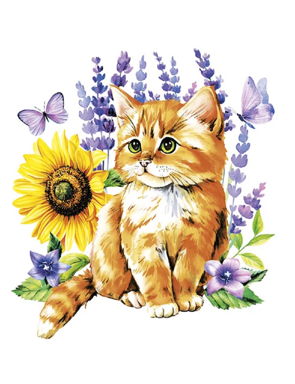 Set 20 servetele Pisicuta intre Flori, 33 x 33 cm (extins), din 3 straturi de hartie, imprimeu multicolor cu o pisicuta adorabila.