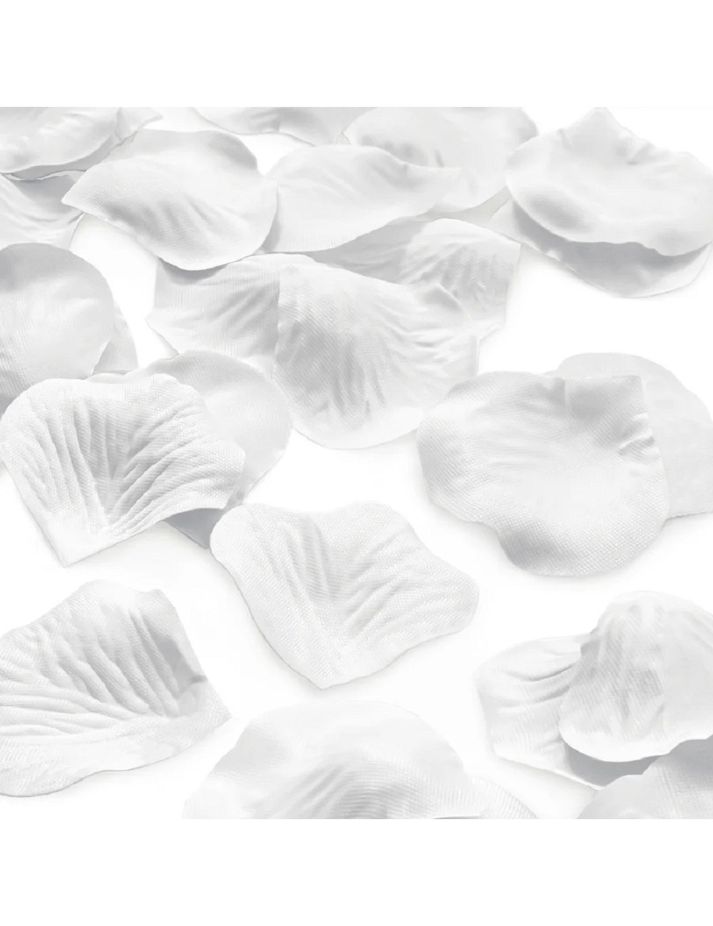 Set 100 Confetti Petale albe de trandafir, cu aspect realist, dimensiuni aprox. 5 cm, din material netesut, pentru decorarea meselor festive.