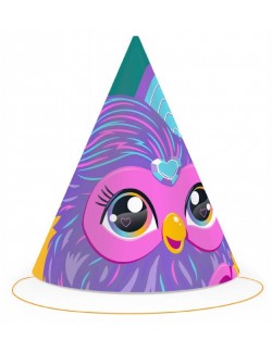 Set 6 coifuri Party Furby, din carton, prindere cu elastic, dimensiuni 11 x 16 cm, imprimeu multicolor.