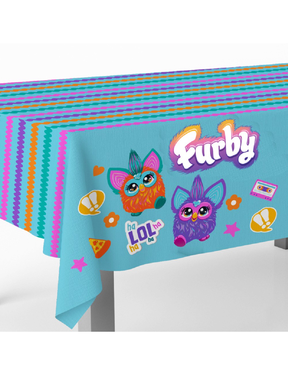 Fata de masa petrecere Furby, dimensiuni 120 x 180 cm, din plastic, multicolora.