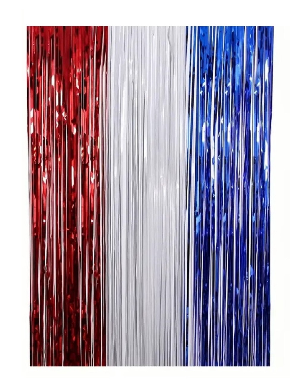 Perdea folie albastru-alb-rosu, inaltime 200 cm, latime 100 cm, poate fi folosita ca decor pentru ușă, perete sau pentru fereastra.