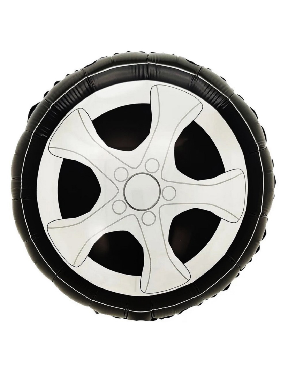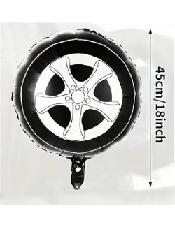 Balon folie Roata auto, diametru 45 cm (dezumflat), culori negru-argintiu, imprimeu identic fata-verso, poate fi umplut cu aer (nu pluteste) sau heliu (pluteste).