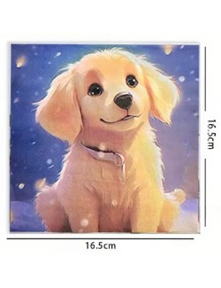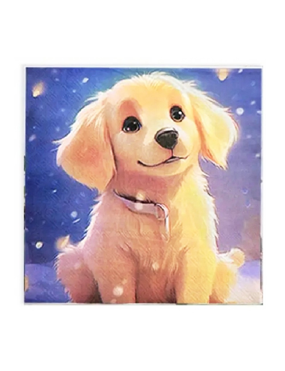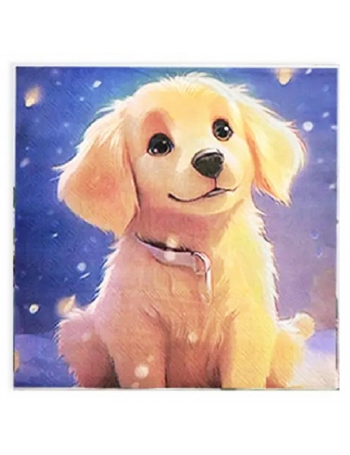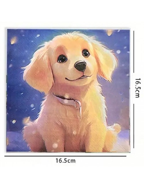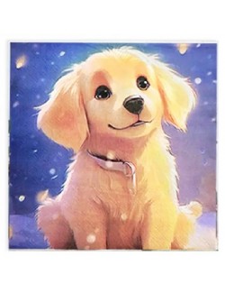 Set 15 servetele catelus Golden Retriever, dimensiuni 33 x 33 cm (extins), din 2 straturi de hartie fina, imprimeu multicolor.
