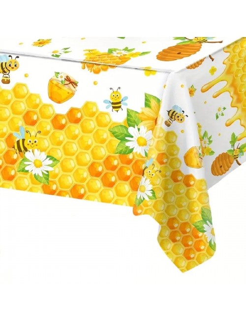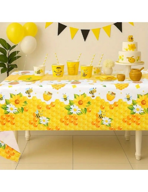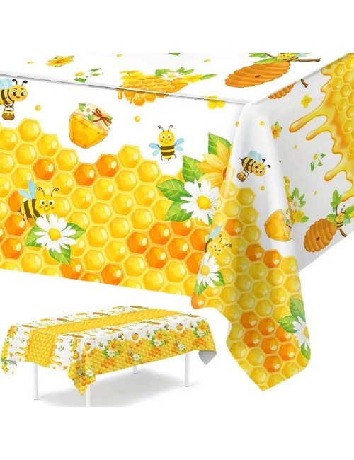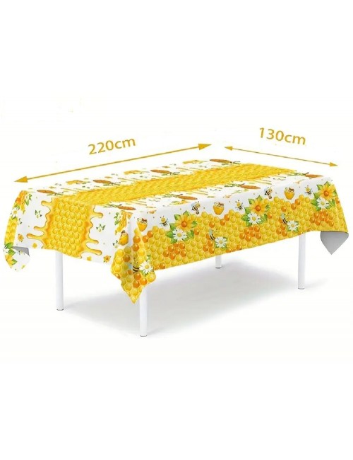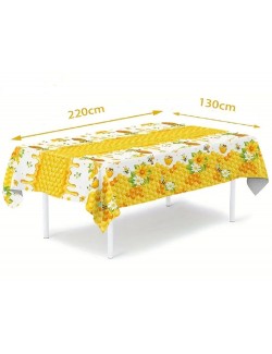 Fata de masa Fagure albine, dimensiuni 130 x 220 cm, reutilizabila, fabricata din plastic subtire, imprimeu amuzant, multicolor.