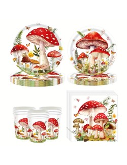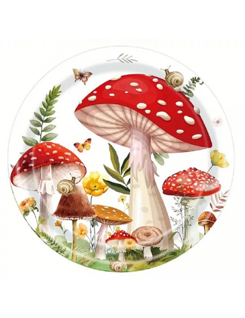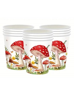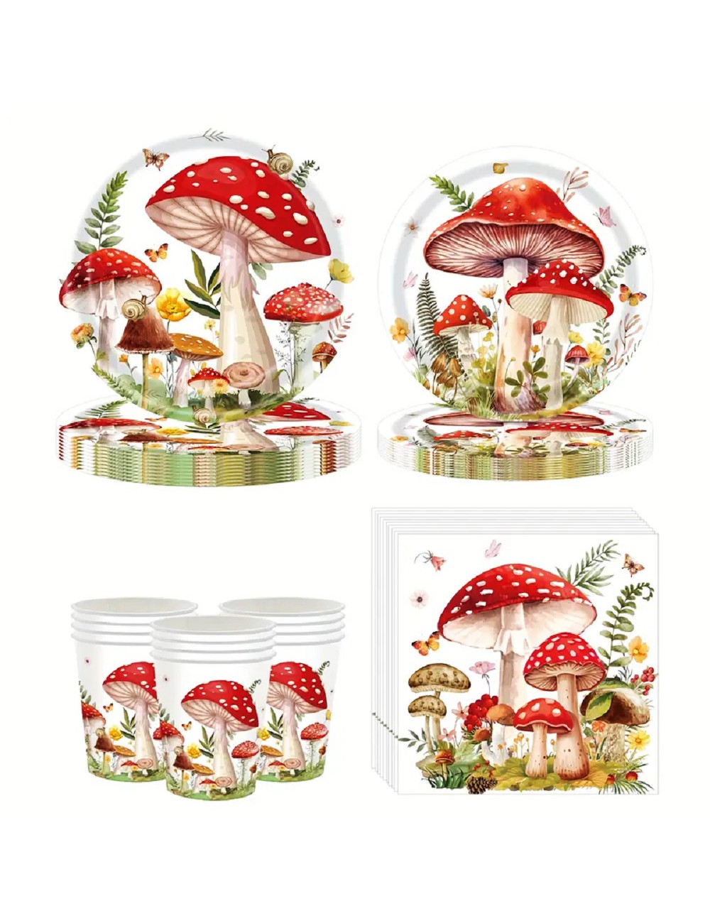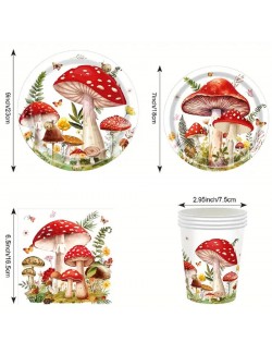 Set Petrecere Ciupercute, pentru 8 persoane, contine produse de unica folosinta, din carton/ hartie, perfecte pentru o petrecere tematica: