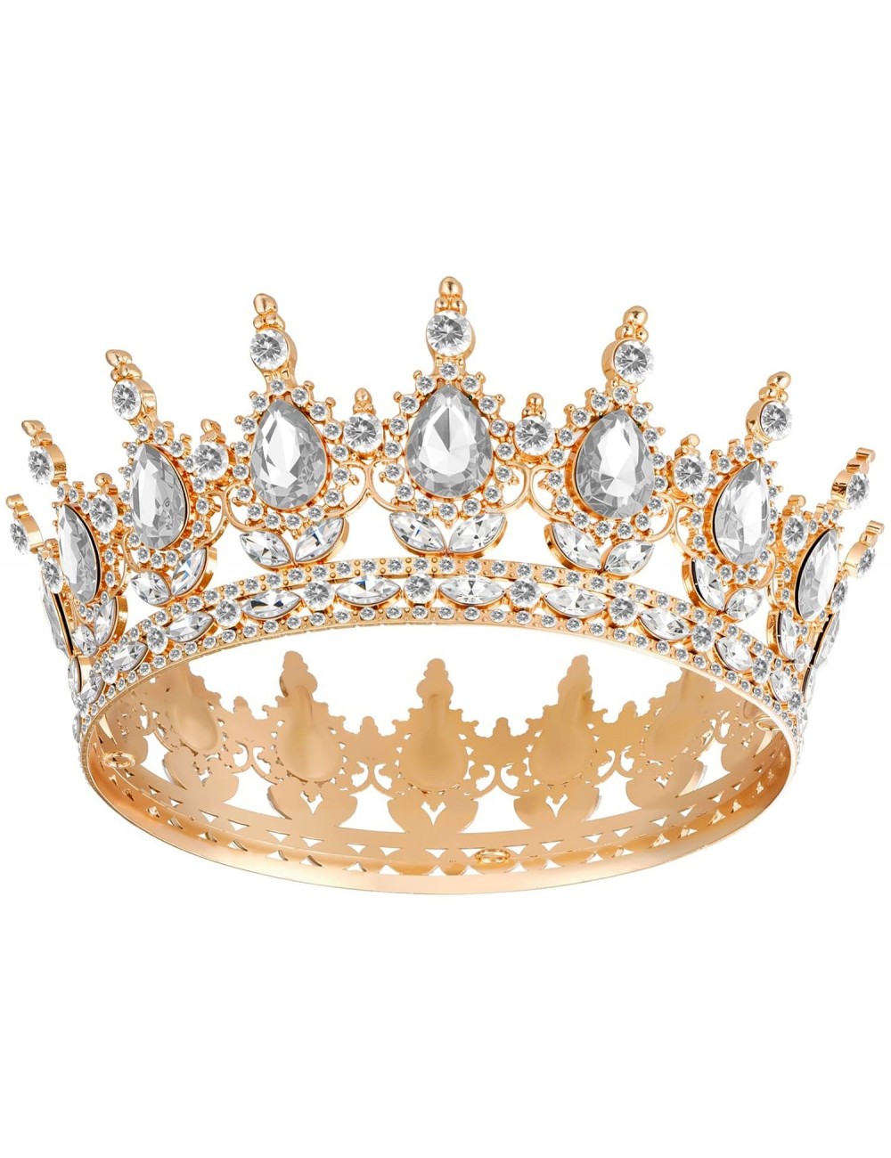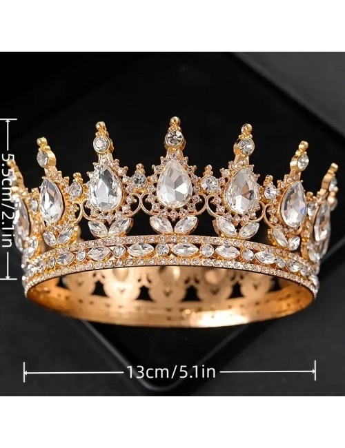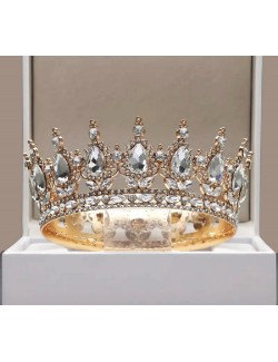 Coronita aurie, cu Pietre albe si strasuri, din aliaj rezistent, un accesoriu deosebit pentru completarea coafurilor sau decoratiune la nunți, aniversări sau petreceri