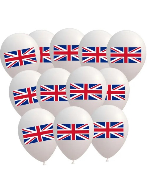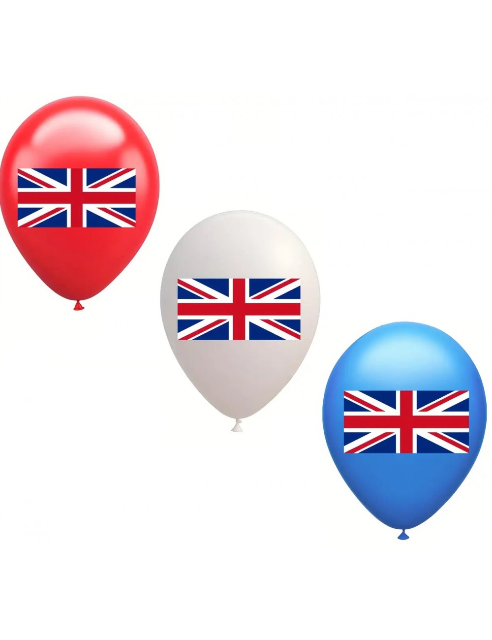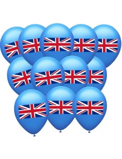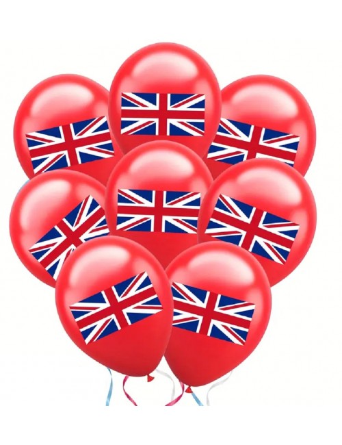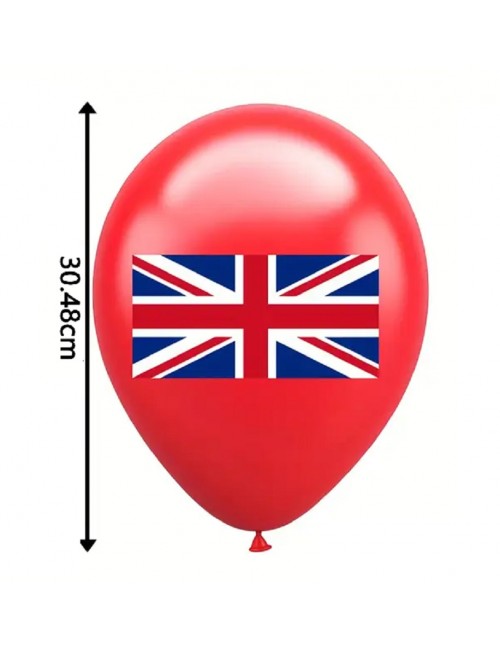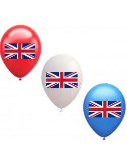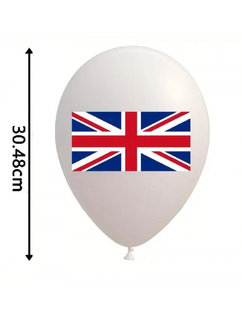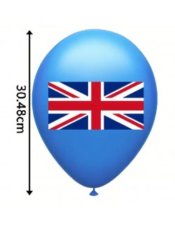 Set 12 baloane tricolore, Steag UK, 30 cm, rosu, alb, albastru, din latex de calitate
