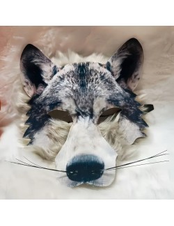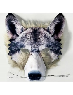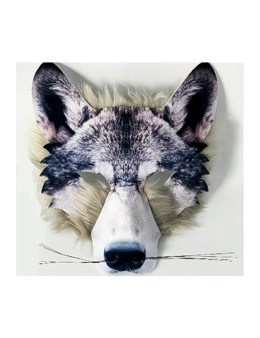 Masca Lup, dimensiuni 22 x 22 cm, prindere cu elastic, material textil si blanita sintetica, 100% poliester, pe suport din plastic.
