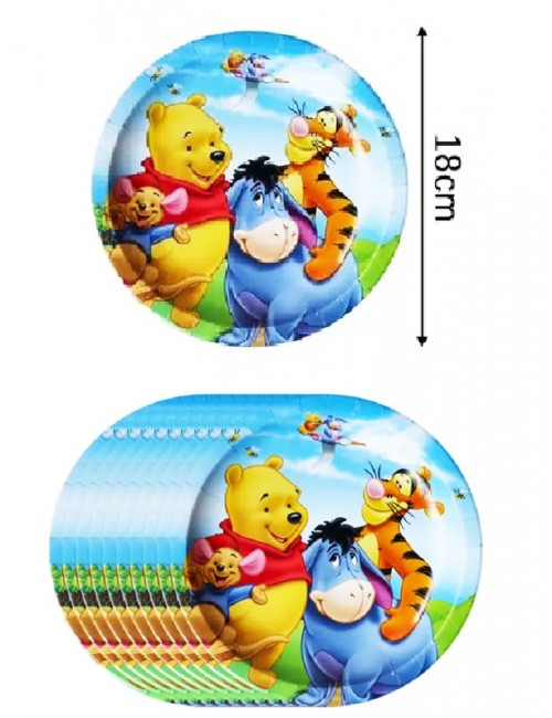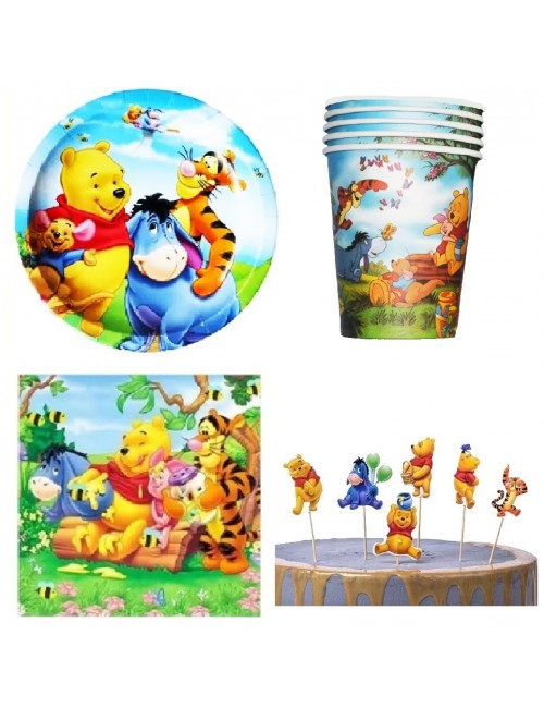 Set Petrecere Ursulet Winnie, pentru 10 persoane, contine produse de unica folosinta, din carton/ hartie, pentru petreceri tematice: