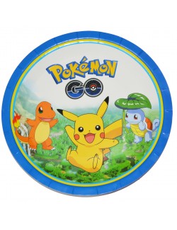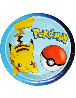 10 farfurii Pikachu Pokemon, diametru 18 cm, de unica folosinta, din carton, multicolore.
