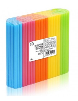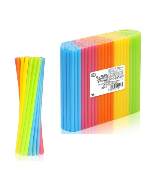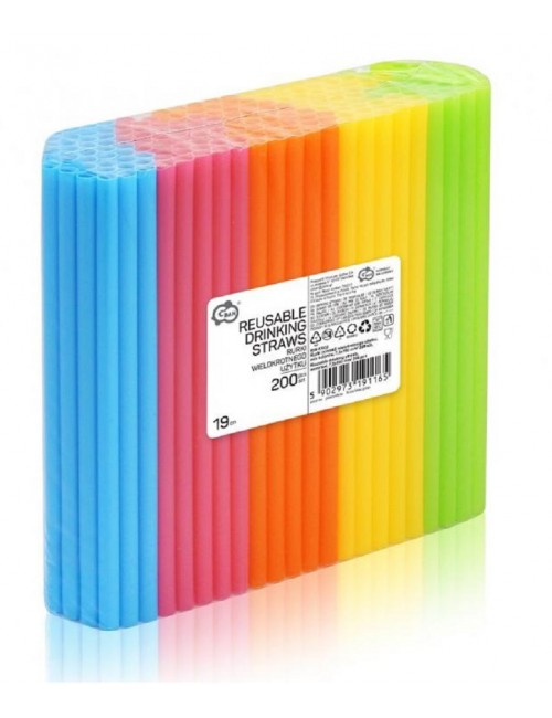 Set 200 paie multicolore, reutilizabile, nu sunt flexibile, lungime 19 cm, diametru 0.75 cm, pentru bauturi reci.