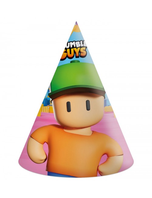 Set 6 Coifuri Party Stumble Guys, din carton, prindere cu elastic, inaltime 16 cm, diametru 12 cm.