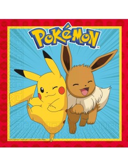Set Party Pokemon pentru 10 persoane, contine 10 farfurii cu diametrul de 18 cm si 10 pahare de 250 ml, de unica folosinta si 10 servetele de 33 x 33 cm (etins), din 2 straturi de hartie