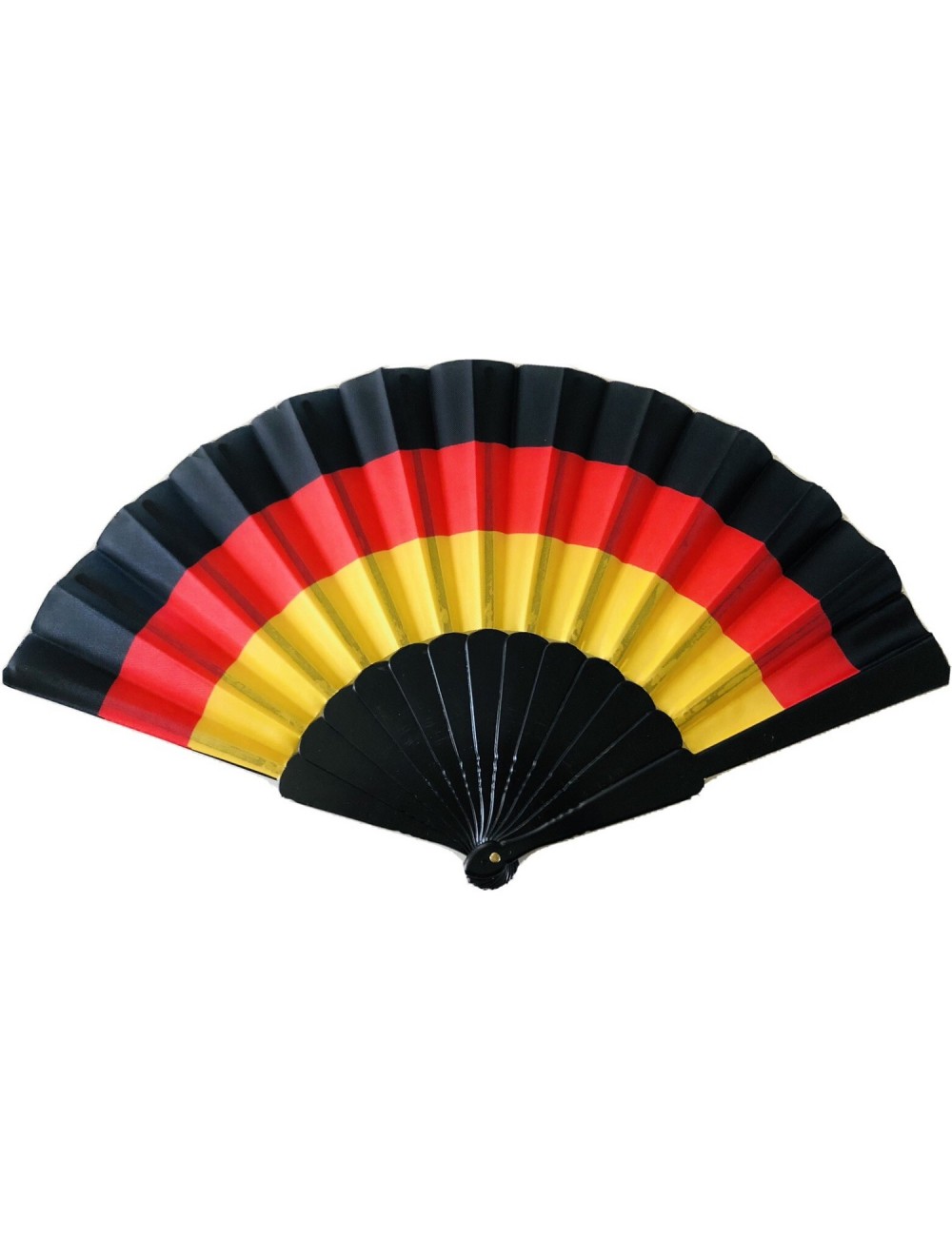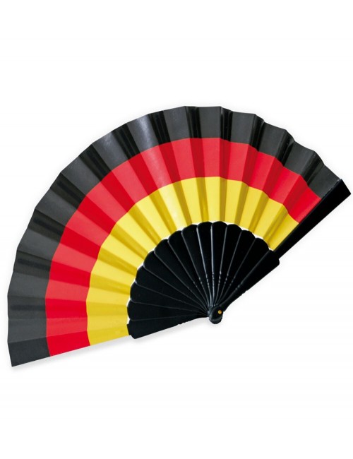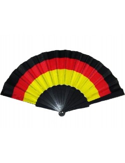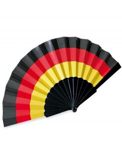 Evantai culori Steag Germania, din material textil (100% poliester) si maner din plastic negru, alcatuit din 14 de palete, lungime totala 23 cm.
