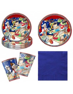 Set Petrecere Pinocchio, pentru 6 persoane, contine produse de unica folosinta, din carton/ hartie, pentru petreceri tematice: