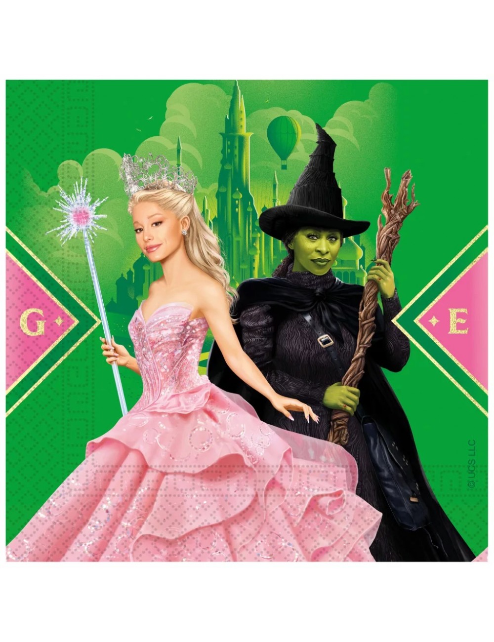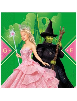 Set 20 servetele Wicked: For good (Vrajitoarele), dimensiuni 33 x 33 cm (extins), din 2 straturi de hartie, perfecte pentru petreceri tematice.