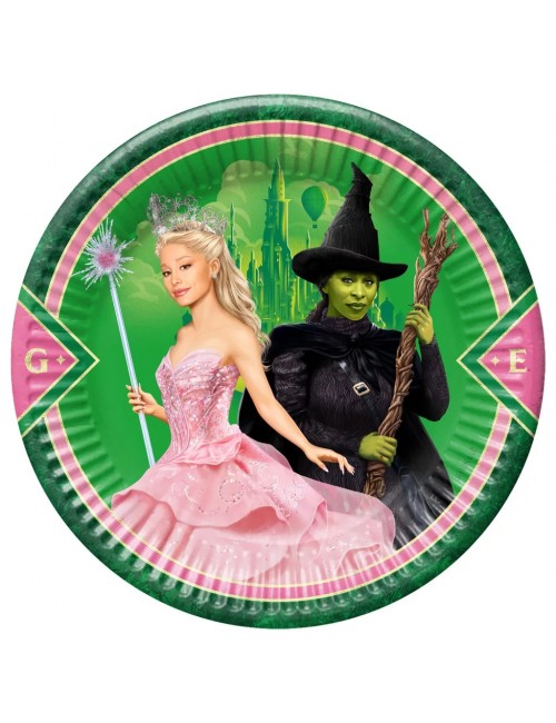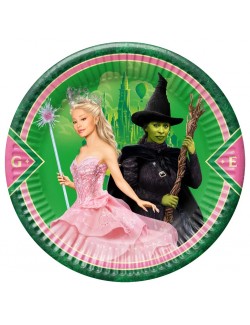 Set 8 farfurii Wicked: For good (Vrajitoarele), diametru 23 cm, de unica folosinta, fabricate din carton.