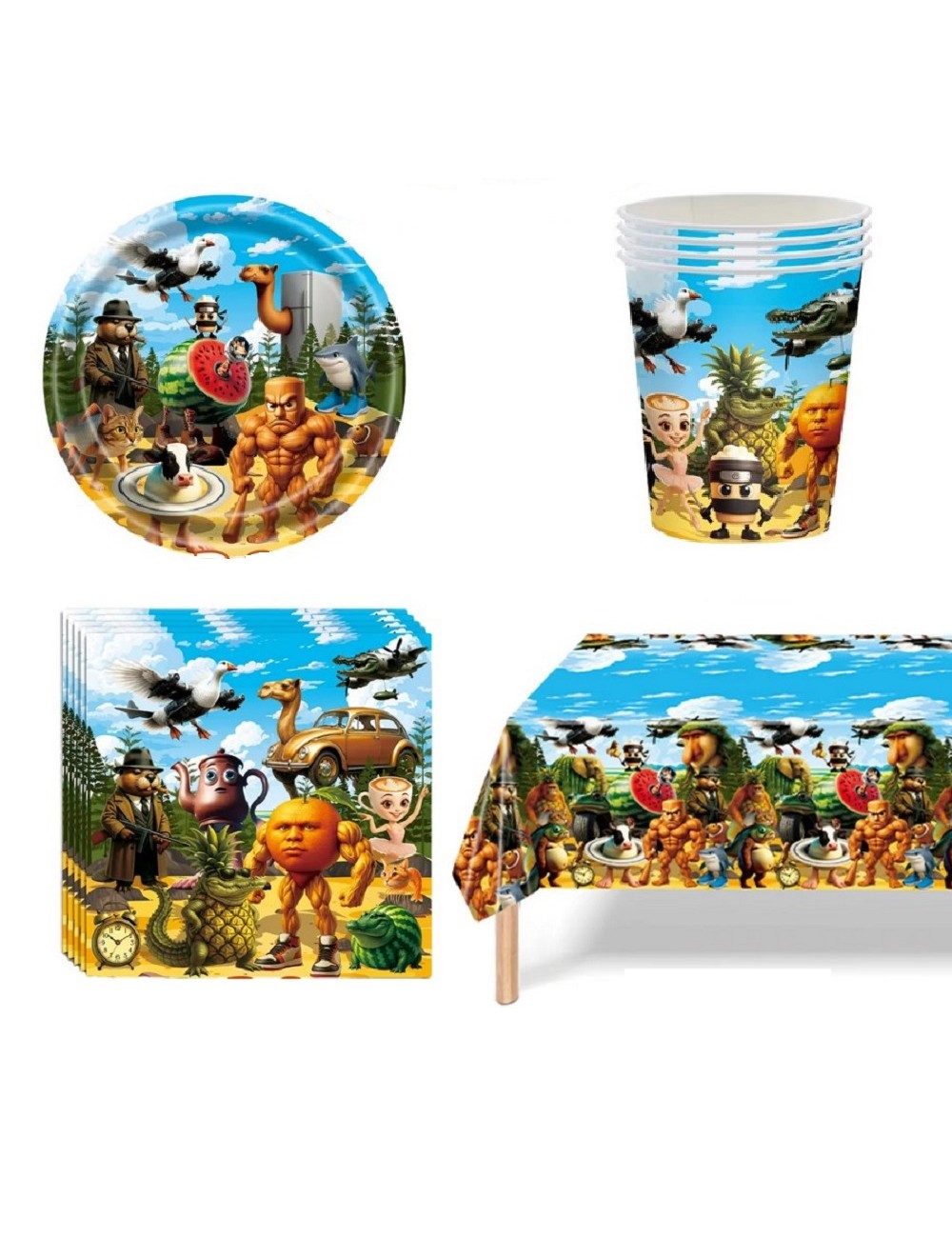 Set Petrecere Italian Brainrot, din 4 piese, pentru 10 persoane, contine produse de unica folosinta, din carton/ hartie: