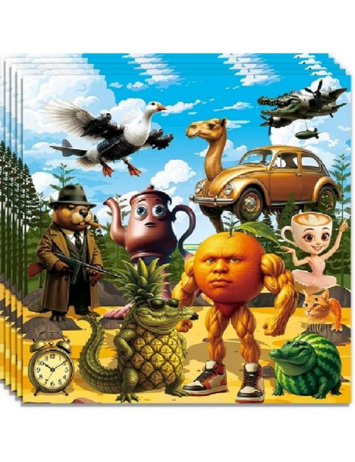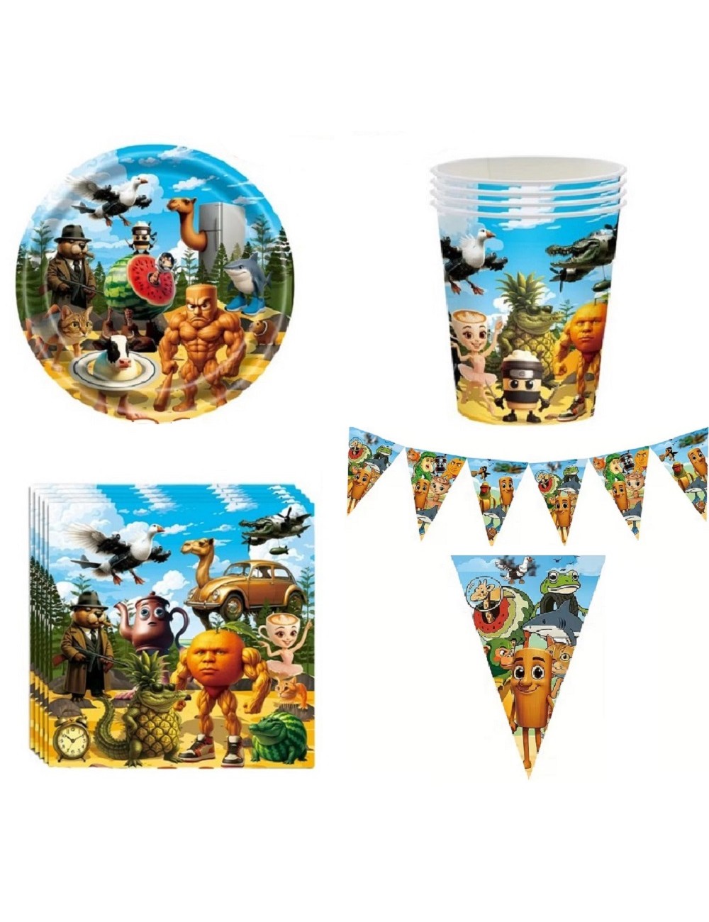 Set Party Italian Brainrot, din 4 piese, pentru 10 persoane, contine produse de unica folosinta, din carton/ hartie pentru petreceri tematice: