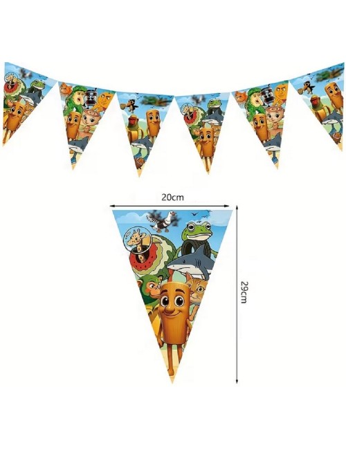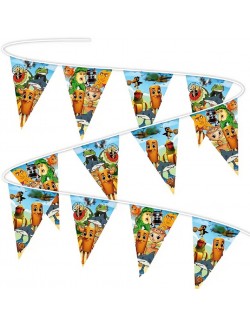 -si o ghirlanda de aprox. 300 cm, alcatuita din 12 fanioane din hartie, de 20 x 29 cm.