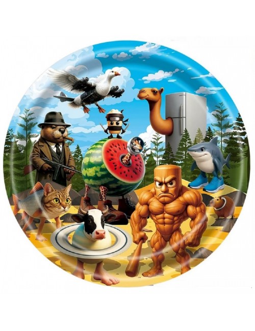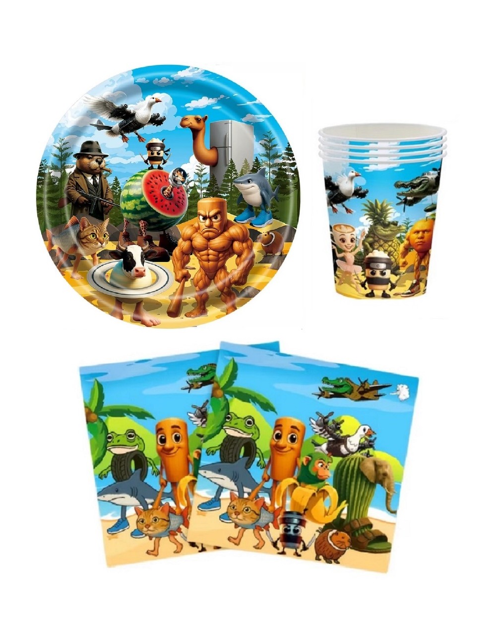 Set Party Brainrot italian, 3 piese, pentru 10 persoane, contine produse de unica folosinta, din carton/ hartie pentru petreceri tematice: