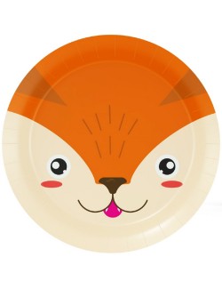 Set 8 farfurii Petrecere Vulpe - Animal faces, diametru 23 cm, de unica folosinta, fabricate din carton, pentru petreceri cu tematica Animale din padure.