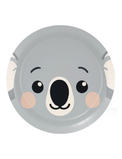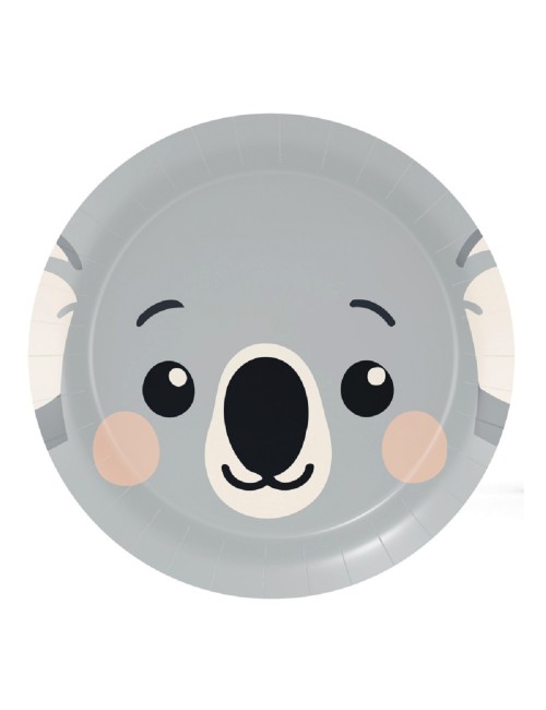 Set 8 farfurii Koala - Animal faces, diametru 18 cm, de unica folosinta, fabricate din carton, pentru petreceri cu tematica Animale din padure.