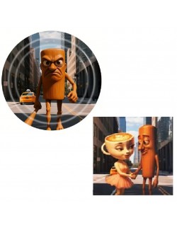 Set 10 Farfurii si 10 Servetele Brainrot italian, imprimeu cu Tung Tung Sahur si Ballerina Cappuccina, produse de unica folosinta, din carton/ hartie pentru petreceri tematice: