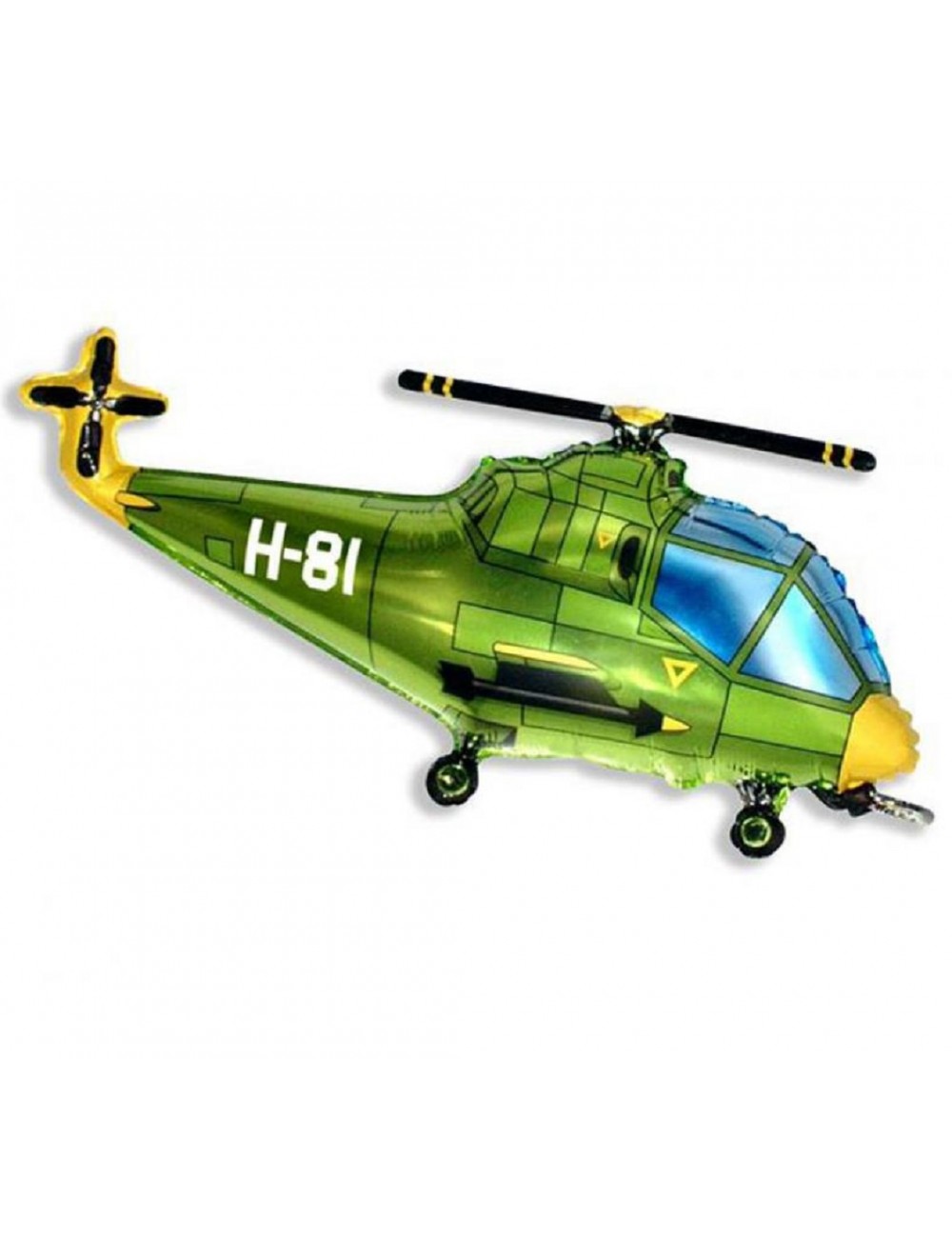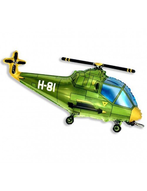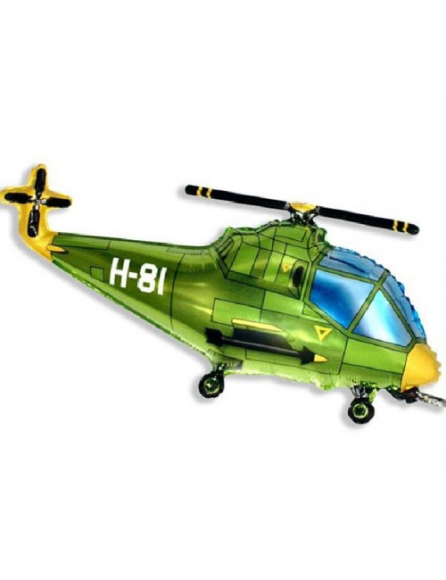 Balon folie, Elicopter verde, lungime 96 cm, inaltime 57 cm (dezumflat), imprimeu identic fata-verso, poate fi umplut cu heliu (pluteste) sau cu aer (nu pluteste).