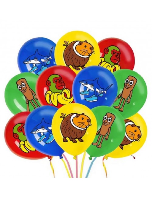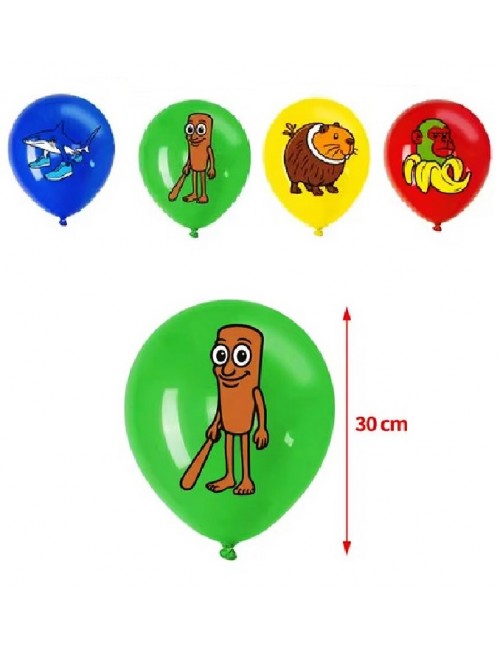 Set 8 baloane Brainrot italian, 30 cm, culori rosu, galben, albastru si verde, fabricate din cauciuc -latex de calitate foarte buna.
