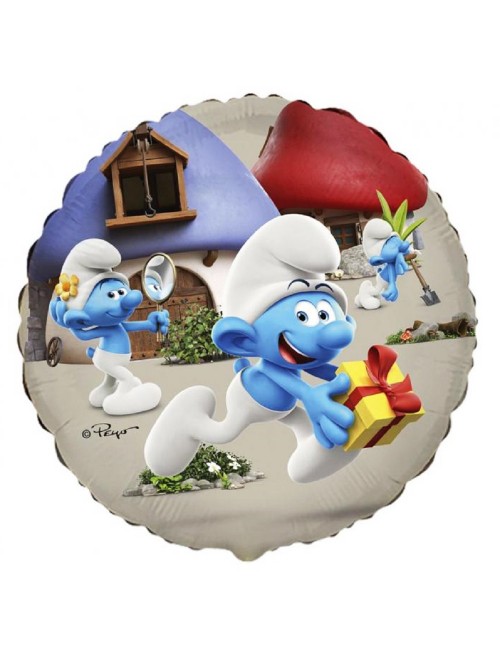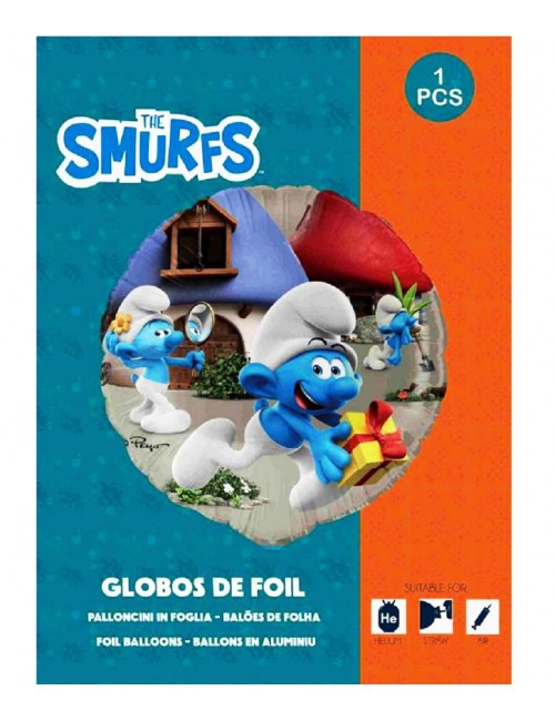 Balon folie Strumfii, diametru 45 cm (dezumflat), imprimeu identic fata-verso, poate fi umplut heliu (pluteste) sau cu aer (nu pluteste).