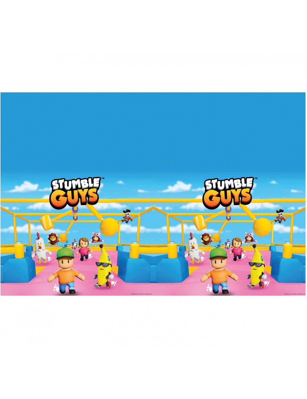 Fata de masa Stumble Guys, dimensiuni 120 x 180 cm, din plastic, multicolora, perfecta pentru petreceri tematice.