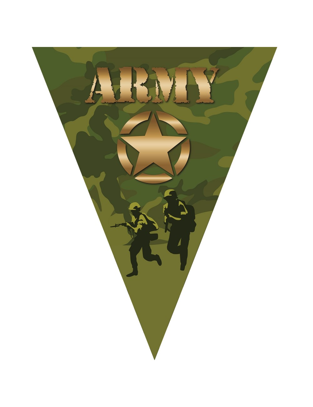 Ghirlanda Petrecere Army - Soldati, lungime 500 cm, contine 10 stegulete din plastic, dimensiuni stegulet aprox. 27 x 18 cm.