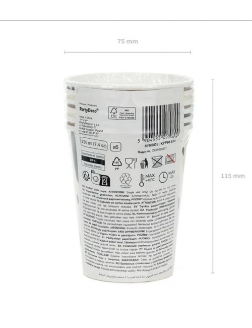 Set 6 pahare Catei, crem-maro, capacitate 220 ml, de unica folosinta, fabricate din carton, perfecte pentru o petrecere tematica.