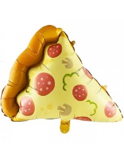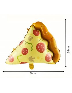 Balon folie Felie Pizza, dimensiuni 54 x 59 cm (dezumflat), poate fi umplut cu heliu (pluteste) sau cu aer (nu pluteste).