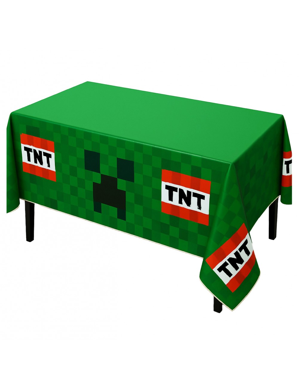 Fata de masa TNT Pixels, dimensiuni 108 x 180 cm, din plastic subtire, culoare verde, imprimeu multicolor, pentru petreceri ale fanilor jocurilor video.