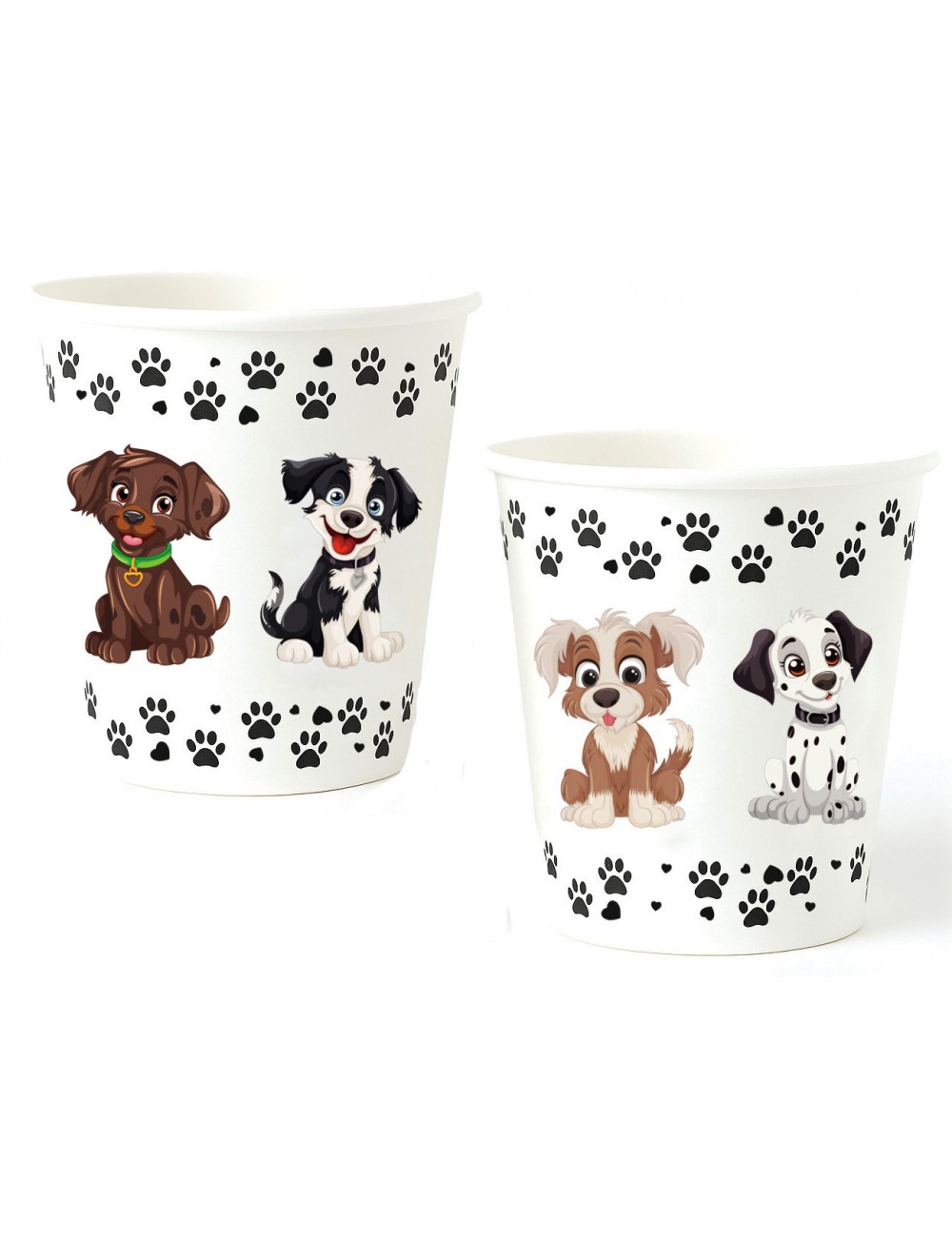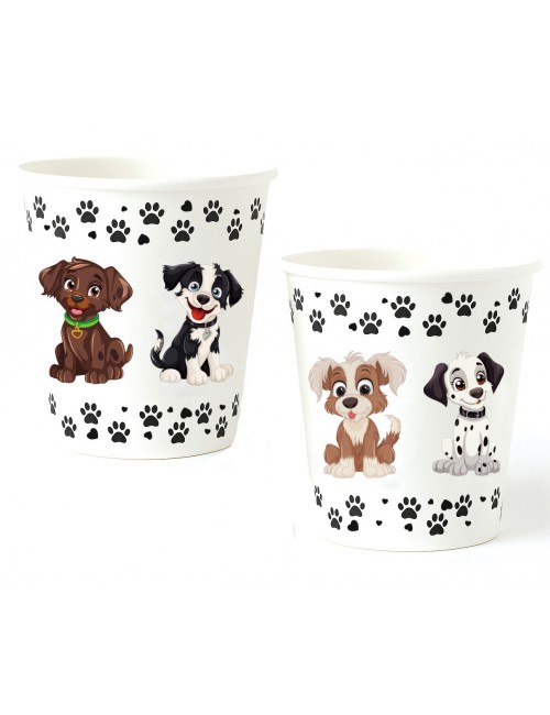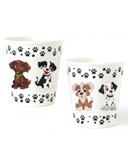 Set 6 pahare cu Catei, capacitate 250 ml, inaltime 9 cm, de unica folosinta, fabricate din carton.