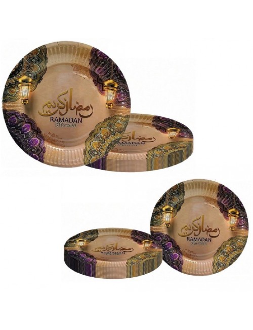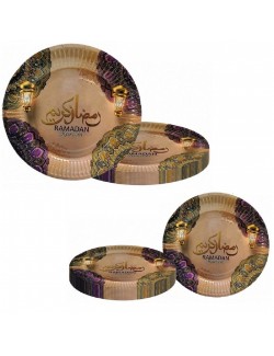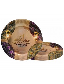 Set petrecere Eid Mubarak pentru 6 persoane, contine 12 farfurii unica folosinta, din carton: