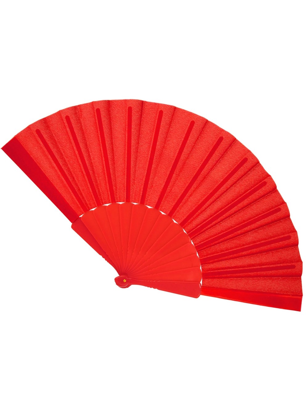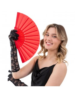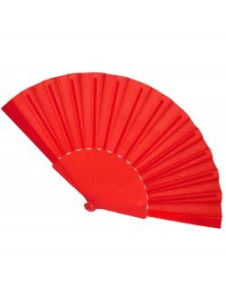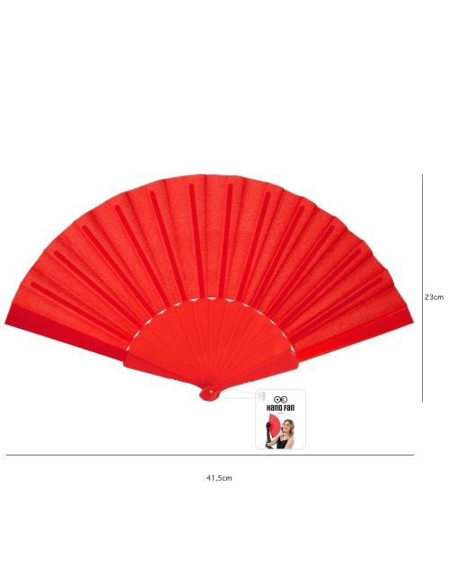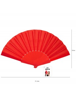 Evantai rosu, lungime 23 cm, din material textil (100% poliester) si maner din plastic rosu, alcatuit din 14 de palete, lungime totala 23 cm.