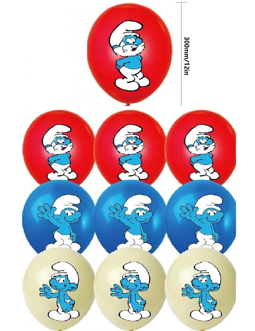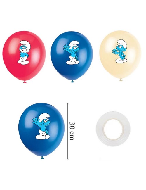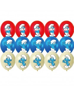 Set 9 baloane Strumfi, 30 cm, culori galben pai, rosu si albastru, fabricate din cauciuc natural - latex, pot fi umplute cu aer sau cu heliu.