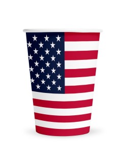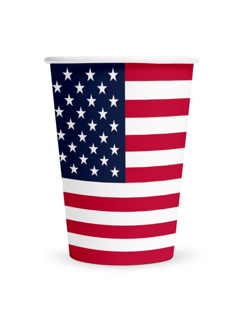 Set 8 pahare Steag SUA, capacitate 210 ml, din carton, de unica folosinta, perfecte pentru o petrecere americana.