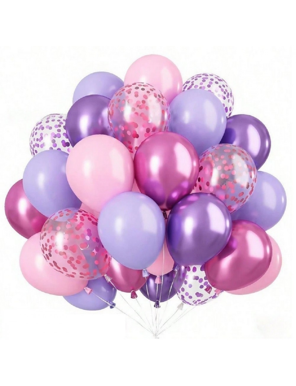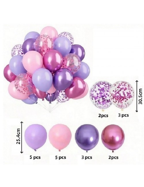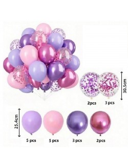 Set 20 baloane roz-mov si confetti, din latex, contine baloane mate, metalizate si baloane transparente cu confetti asortate, inaltimi diferite: 25 si 30 cm,