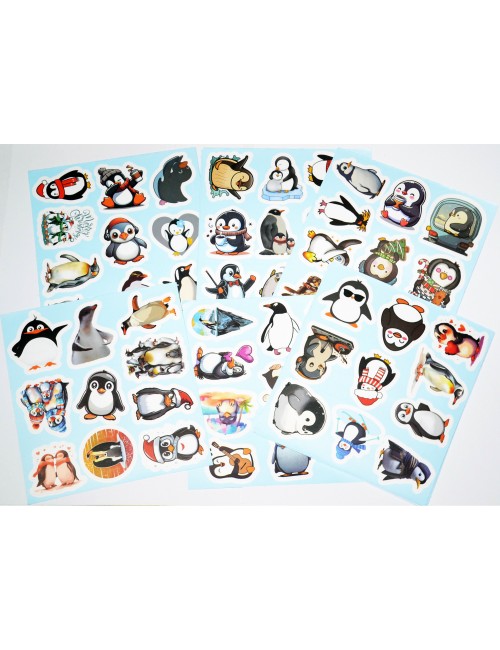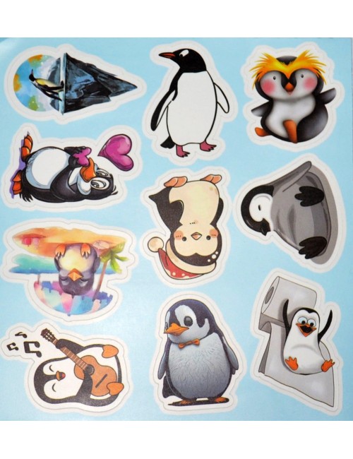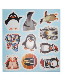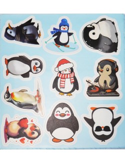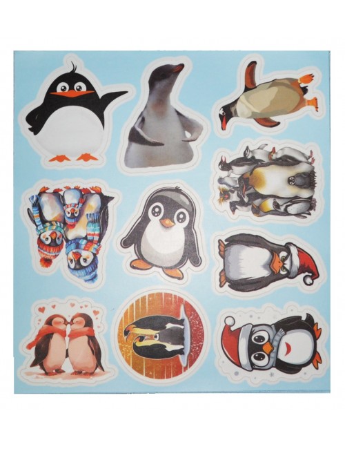 Autocolante cu Pinguini, o folie contine 10 stickere cu dimensiuni (4-5 cm) si imagini diferite.