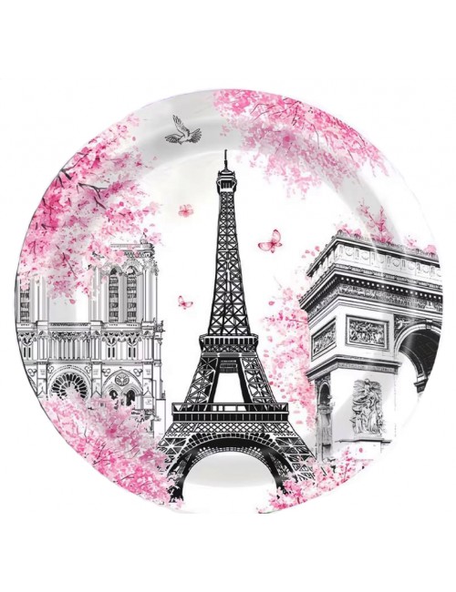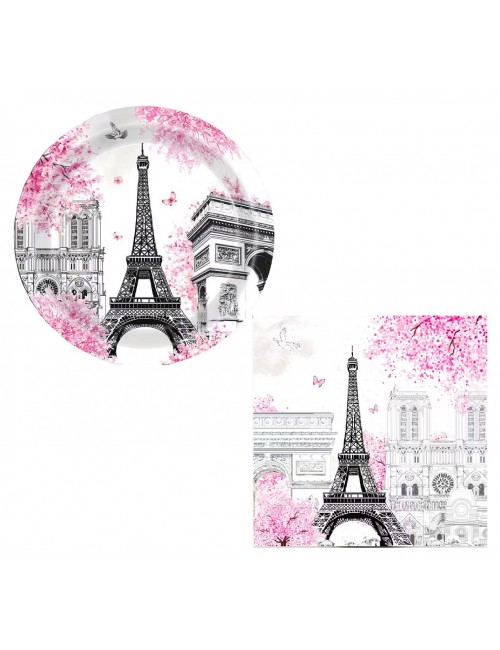 Set Petrecere - Servetele si Farfurii de 20 cm, cu tematica Franta Paris Turn Eiffel, pentru 10 persoane, contine produse de unica folosinta, din carton/ hartie: